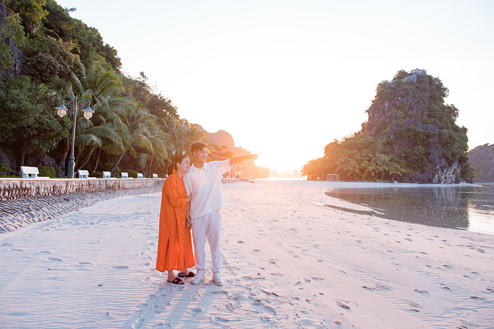Với bãi tắm riêng tư và trải dài, du khách có thể thả mình vào làn nước biển trong xanh, thư giãn trên bãi cát mịn màng, hoặc tham gia vào các hoạt động giải trí như lướt sóng, chèo kayak hoặc đơn giản là tận hưởng bình minh và hoàng hôn trên biển.